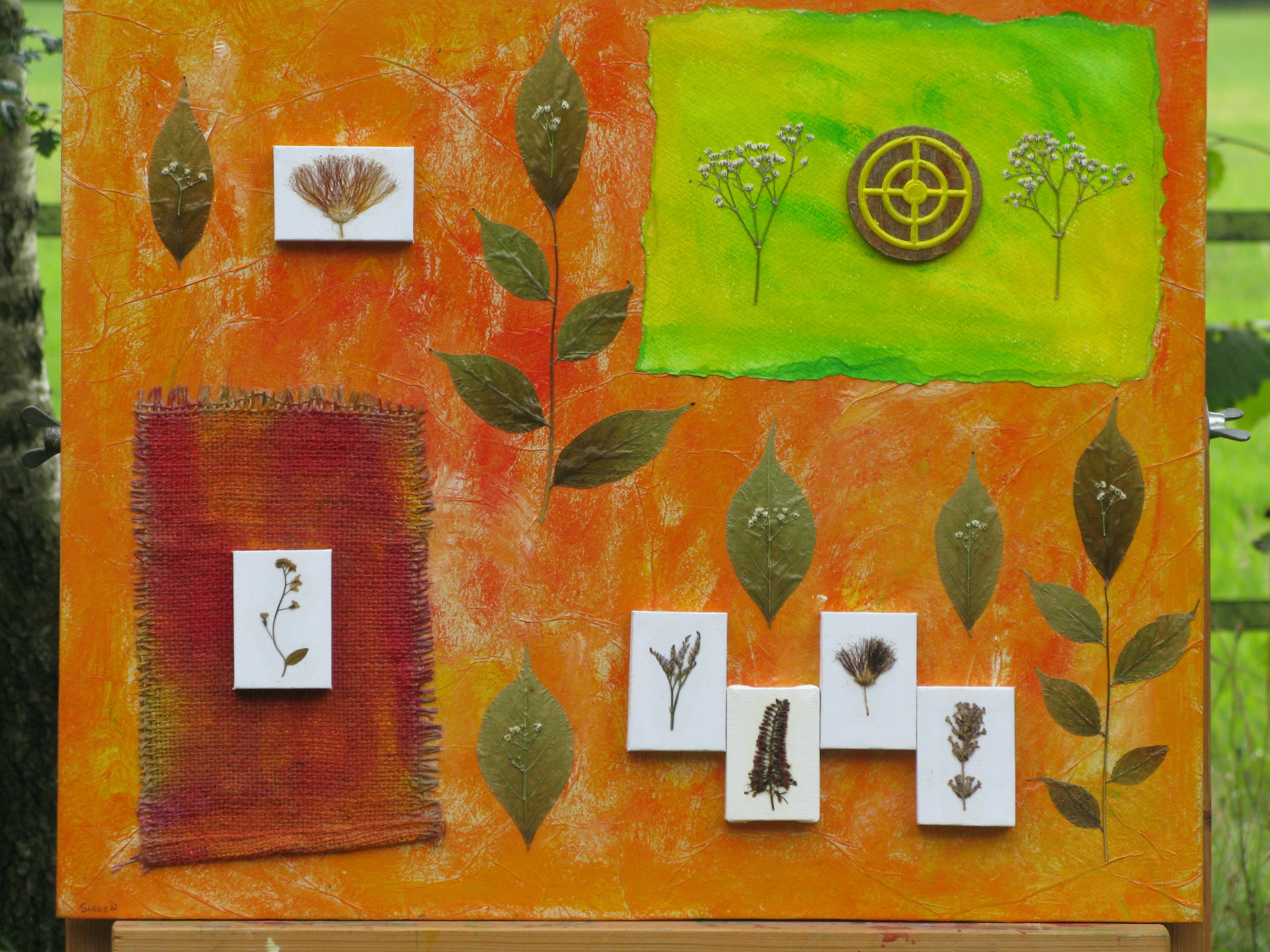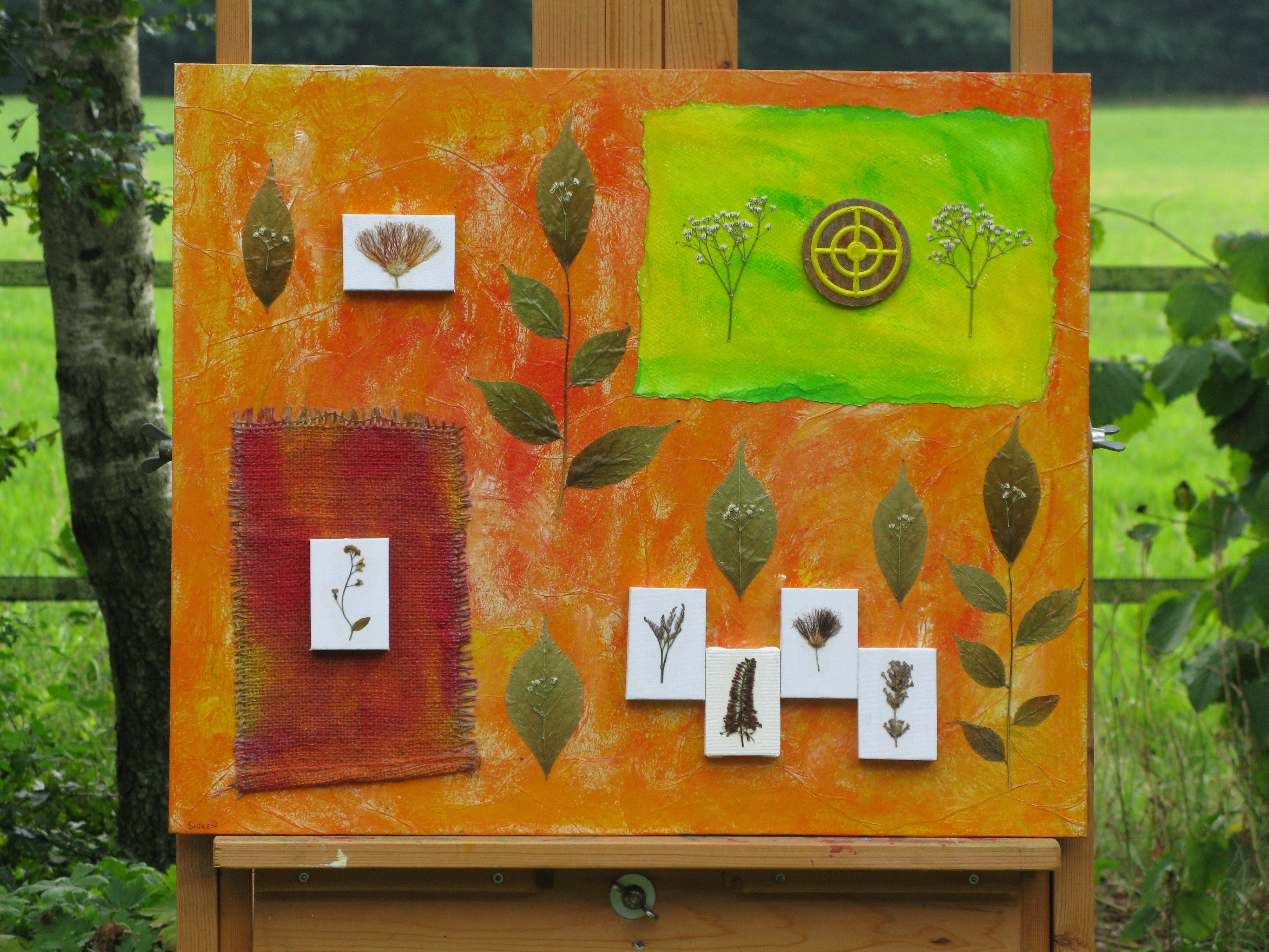 Beschrijving: 6 Miniaturen op doek, op een achtergrond van MDF. Afm. 60 x 50