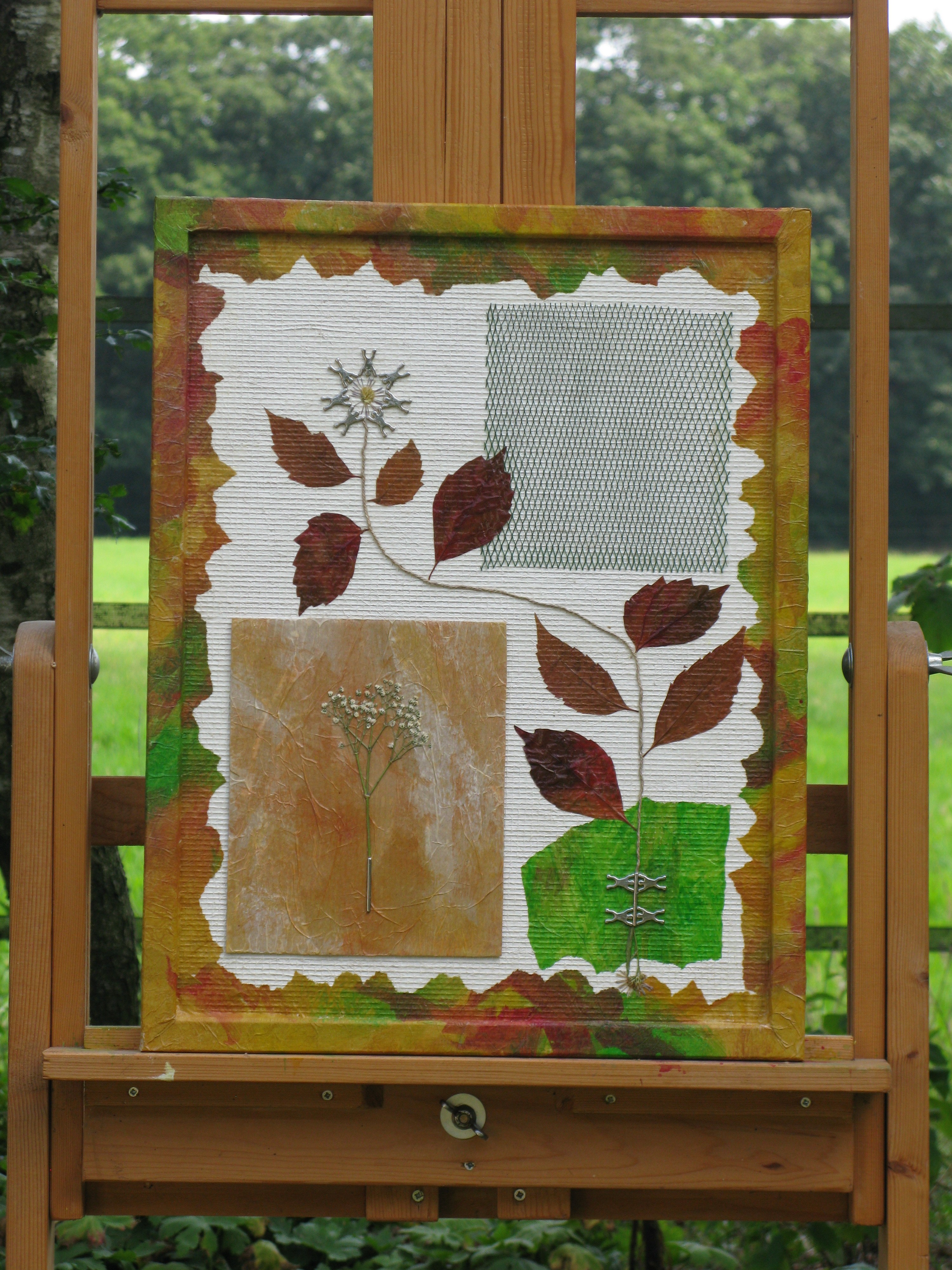 Beschrijving: Diverse materialen op gebruikt prikbord. Afm. 42 x 56