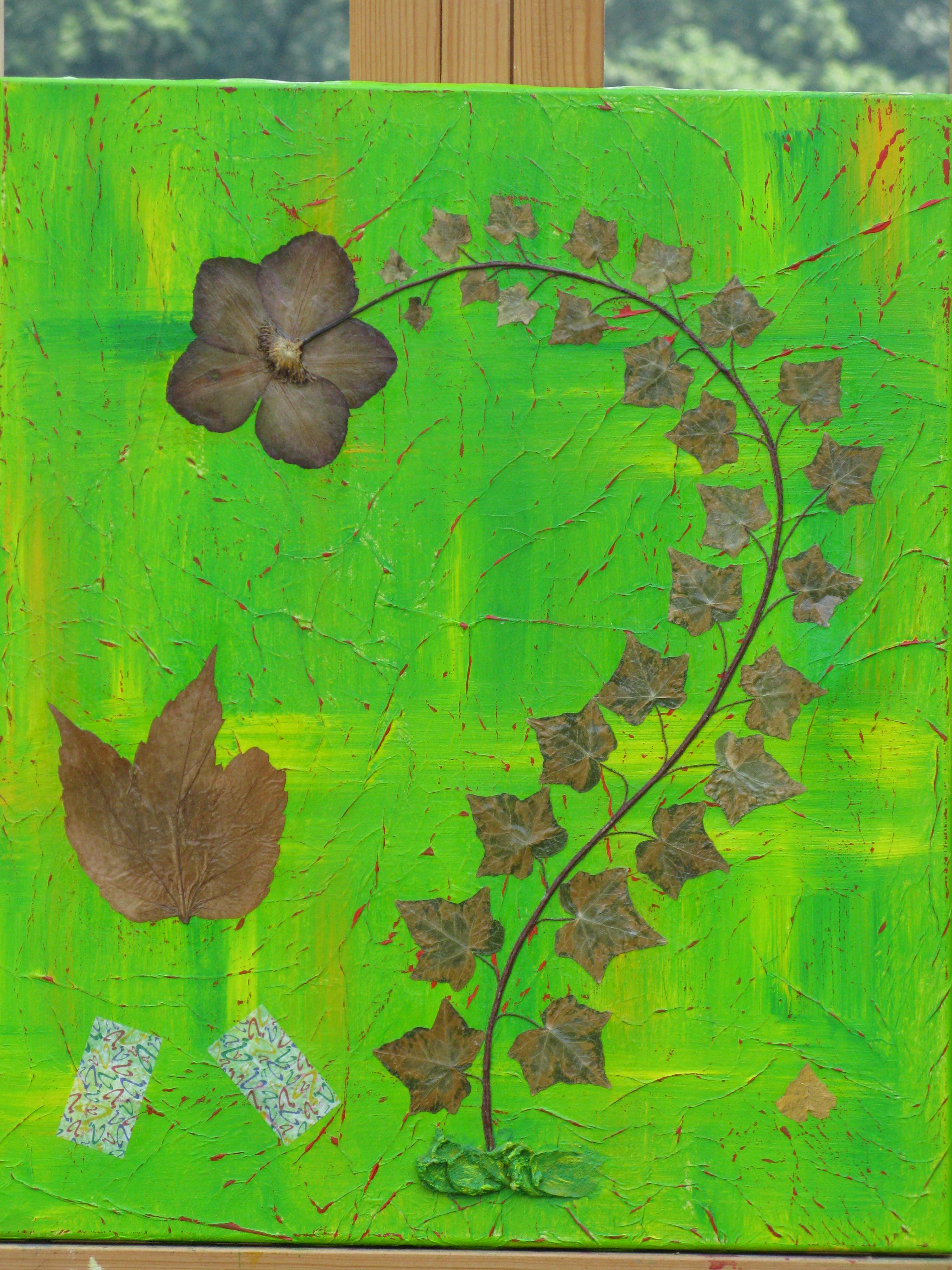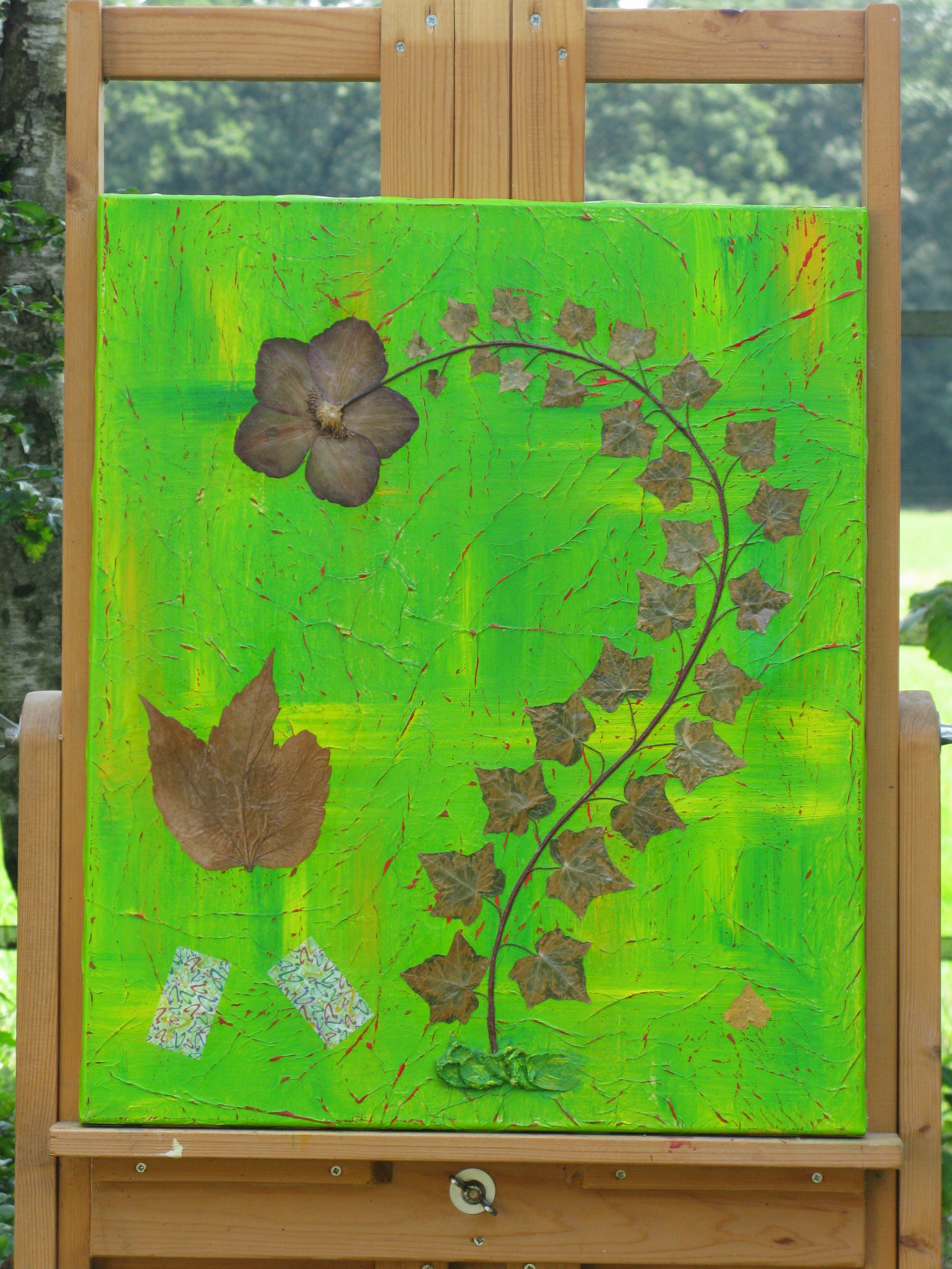 Beschrijving: Droogbloemen op katoen. Afm. 50 x 60